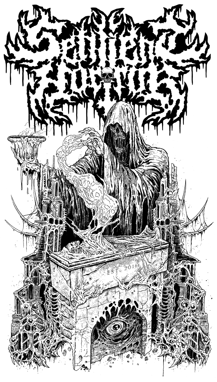 Merchandise illustration for SENTIENT HORROR (USA), in support of their ten-year-anniversary as a death metal outfit.