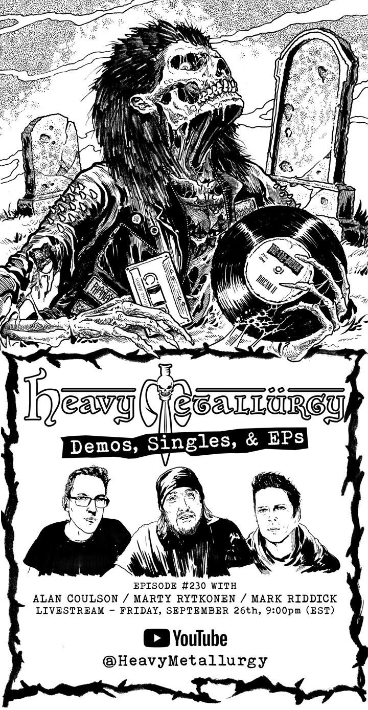 Tomorrow night at 9:00pm (EST) I’ll be on the HEAVY METALLURGY livestream (Episode 230) YouTube channel with hosts—Marty & Alan—to share and talk about our favorite demo tapes and 7″ EPs. I’ll be sharing some early 1990s deep cuts from my music collection!