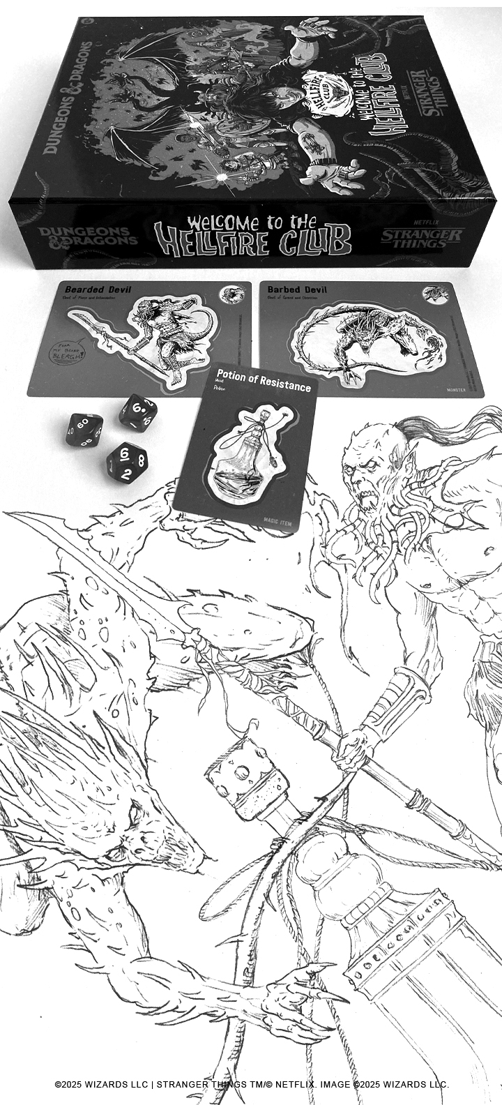 I’m excited to share three card illustrations I created for the new DUNGEONS & DRAGONS x STRANGER THINGS “Welcome to the Hellfire Club” campaign box set, available now!